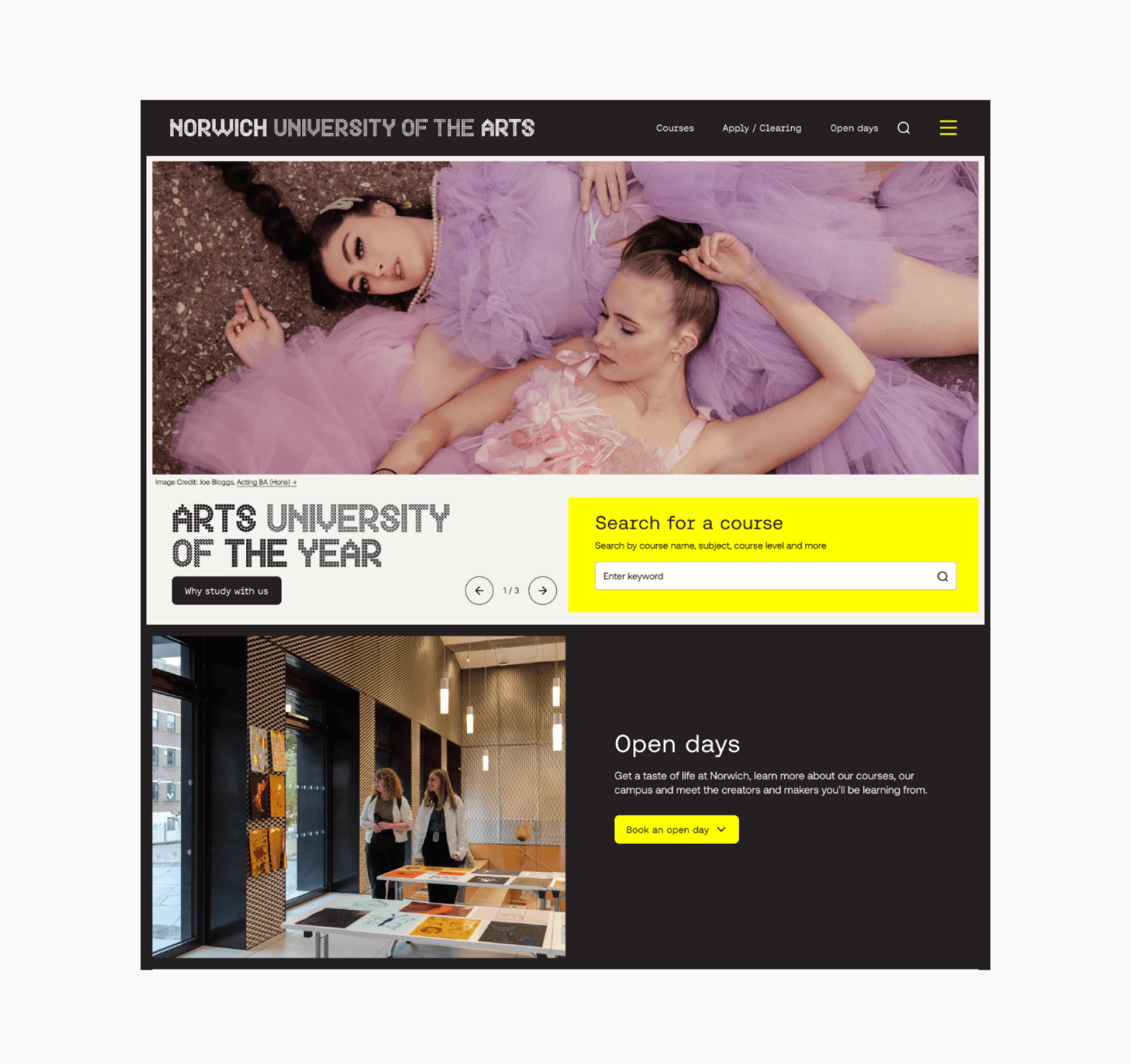 To ensure long-term consistency across multiple digital channels, we developed a separate design system with reusable components, guidelines, and tools. This system enables Norwich University of the Arts to maintain a strong and cohesive digital identity across all platforms.